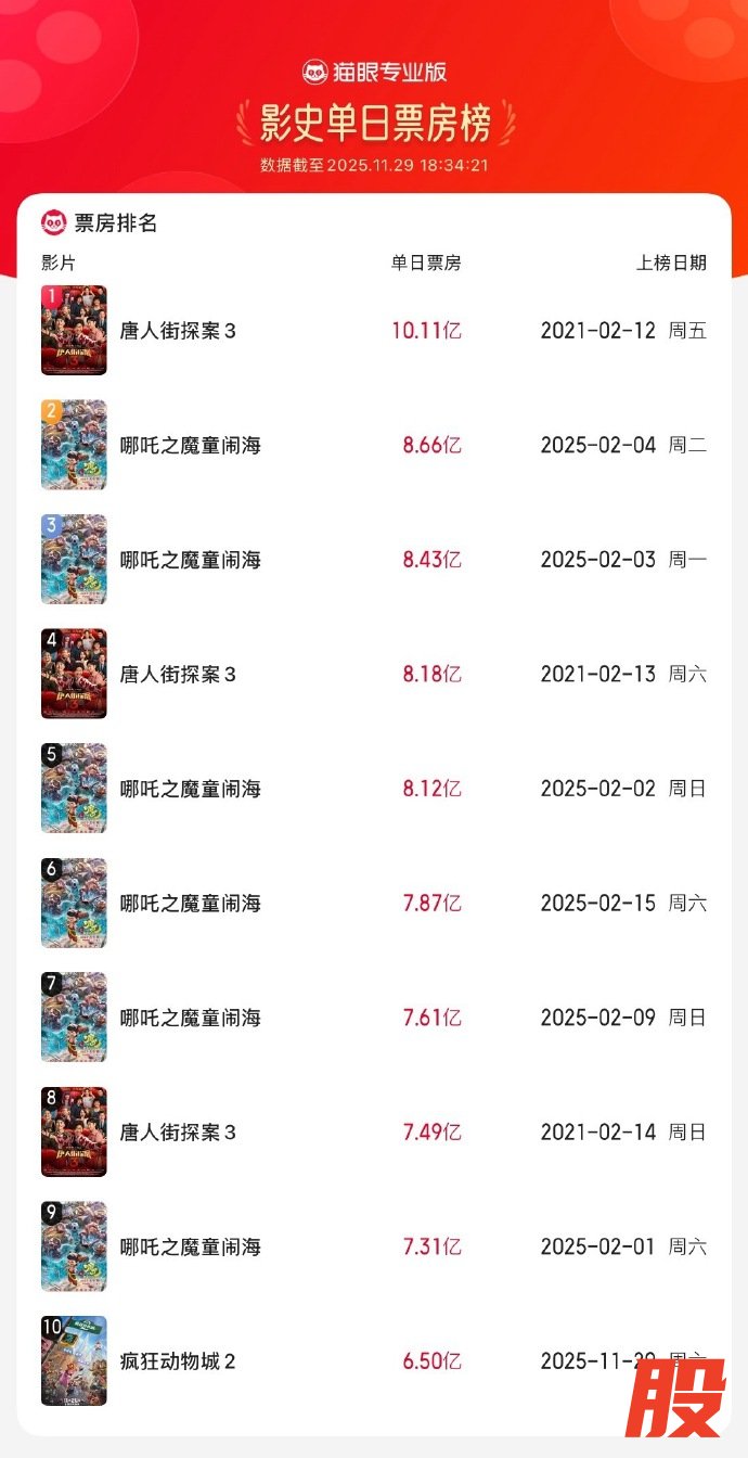 影视股集体走高、中国电影涨停!《疯狂动物城2》上映6天票房已超前作《疯狂动物城2》的上映,让不温不火的2025年票房大盘略有起色,因此也在一定程度上拉升了影视板块。